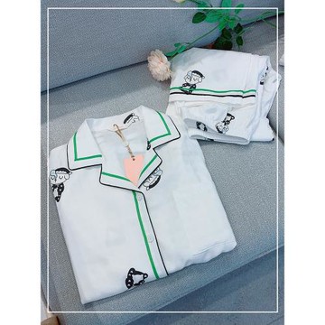 美夢夏季睡衣女款長袖薄款貢緞棉綢春秋可愛卡通大碼家居服可外穿