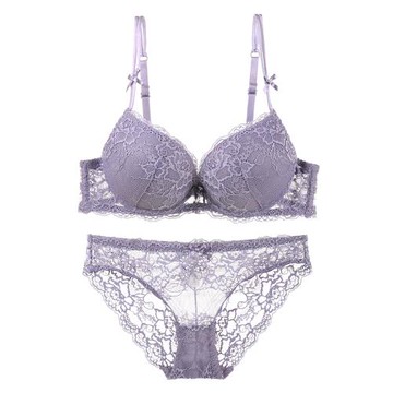 女人的秘密性感聚攏蕾絲薄棉三角杯文胸套裝無鋼圈舒適內衣胸罩女
