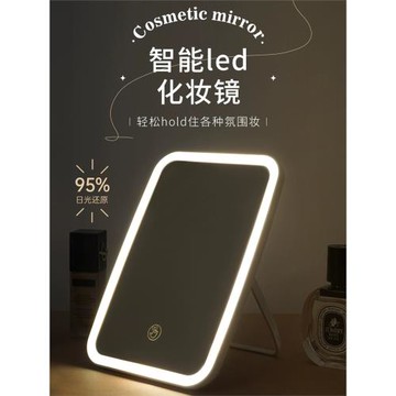 LED化妝鏡帶燈桌面臺式便攜折疊學生宿舍隨身辦公梳妝