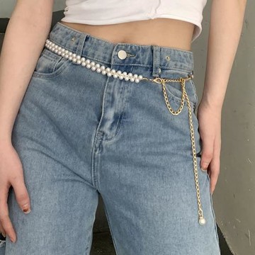 珍珠腰鏈女配襯衫西裝百搭時尚裝飾連衣裙鏈子鏈條細腰帶漢服夏季