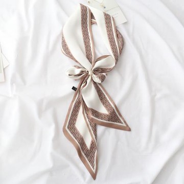 韓國溫柔素凈氣質長條絲巾 窄長條白色裝飾領巾圍巾發帶腰帶