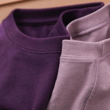碳素磨毛面料!淡紫色重磅純棉圓領短袖t恤男女純色寬松潮流打底T