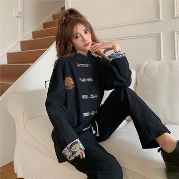 春秋款中國風套裝女漢服古風道袍刺繡古裝外套盤扣改良版中式唐裝