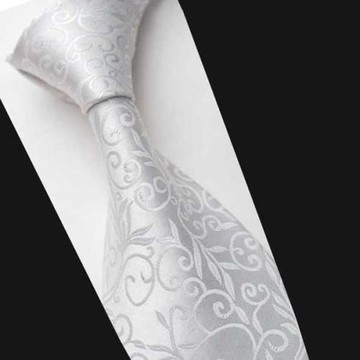 高檔正裝商務純白色花紋真絲領帶