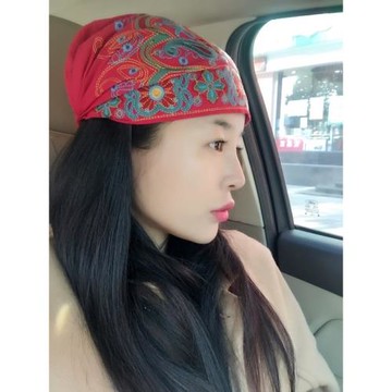 楊麗萍同款民族風繡花包頭帽刺繡頭巾復古原創頭飾休閑發帶遮白發
