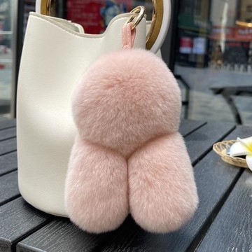可愛獺兔毛毛球汽車鑰匙扣皮草掛件毛絨玩偶書包包掛飾生日禮物女