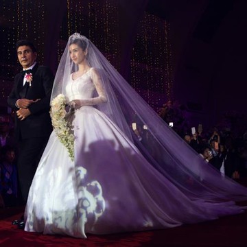 羽毛馬甲白紗婚紗禮服