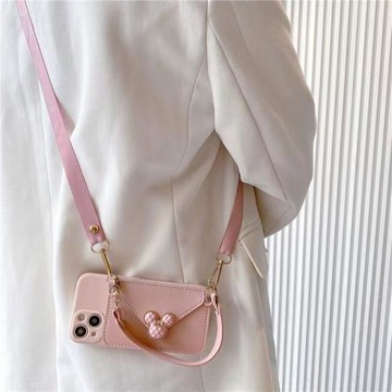 原創小胖妹零錢包適用iphone15promax斜挎手機殼16pro女款蘋果13背帶式掛繩11/12卡通14pro防摔xs/xr/8全包邊