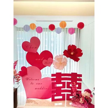 超大喜字婚房布置套裝簡約高級背景墻女方臥室男方客廳結婚裝飾