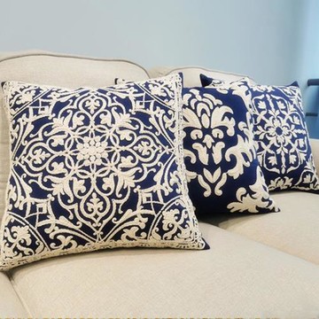 【協貿】時尚設計感百搭精緻藏藍花紋方形抱枕含芯