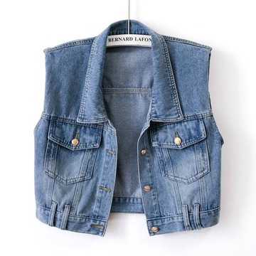 歐貨休閑復古藍貼皮牛仔馬甲女背心春秋新款無袖顯瘦外套坎肩