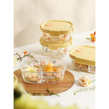 西比爾小清新玻璃保鮮盒飯盒帶蓋家用外帶密封便當盒耐高溫保鮮碗
