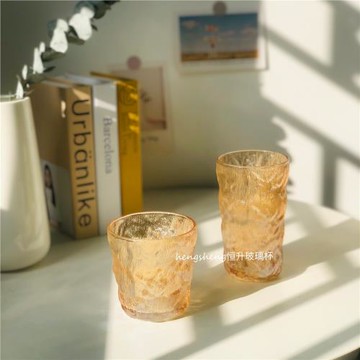 ins琥珀色冰川紋彩色玻璃杯果汁杯其氣泡水杯咖啡杯高顏值樹皮紋