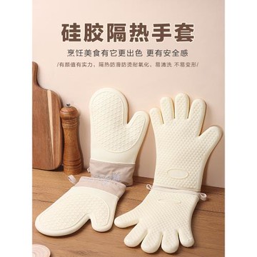 防燙手套加厚隔熱防滑耐高溫廚房家用硅膠手套烘培烤箱微波爐專用