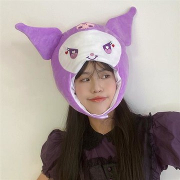 ins少女心毛絨可愛卡通紫色小惡魔庫洛米頭套帽子表演拍照萬圣節