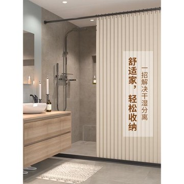 高檔折疊浴簾防水布簾套裝免打孔浴室隔斷簾子衛生間干濕分離磁吸