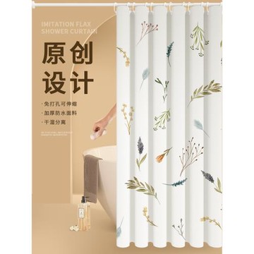 弧形浴簾桿磁吸隱形免打孔套裝隔斷簾防水加厚布亞麻隔水干濕分離