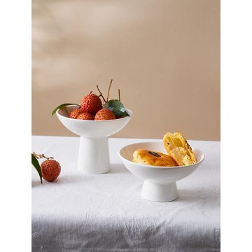 IMhouse日式高腳盤陶瓷家用干果盤小吃點心碟零食茶點盤簡約白色
