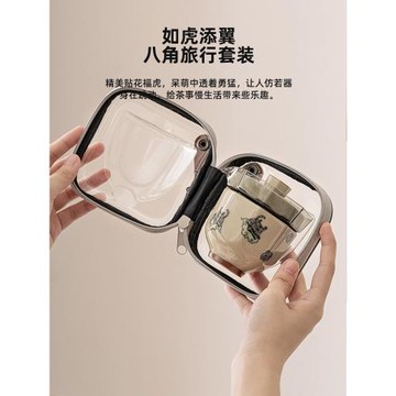 如虎添翼旅行茶具套裝玻璃蓋碗單人戶外便攜式陶瓷快客杯一壺二杯