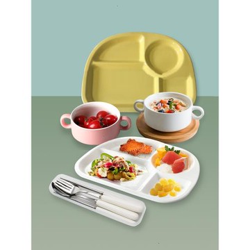 陶瓷分格餐盤早餐碗兒童餐盤大人減脂分餐盤子月子餐具勺叉筷套裝