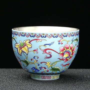 琺瑯彩八方聚財主人杯茶杯來宮廷風格中式陶瓷家用高檔單杯品茗杯