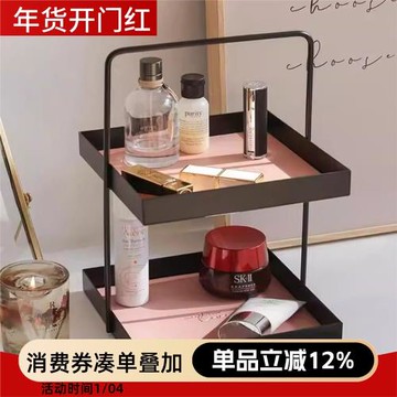 簡約鐵藝雙層玄關鑰匙首飾收納盤高級感家居梳妝臺化妝品展示架