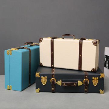民國復古手提箱美式純色懷舊老式仿古行李箱手提攝影道具陳列皮箱