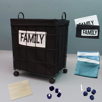 日本 squ+ SUN&WASSER鐵線摺疊洗衣籃/置物籃(附輪)-45L-多色 - 海軍藍