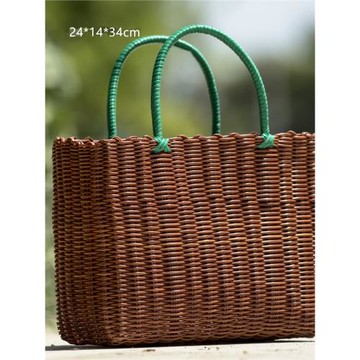 店長推薦新款彩色撞色塑料菜籃子手工編織包手拎野餐籃洗澡浴筐