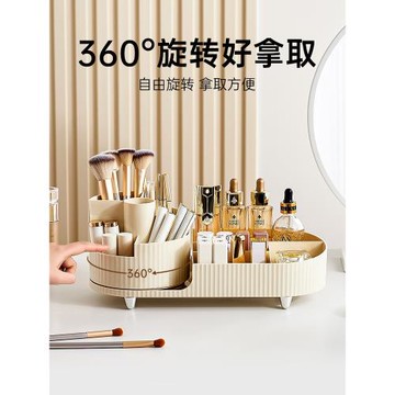 化妝品收納盒桌面高級感奶油風口紅化妝盒大容量護膚品旋轉置物架