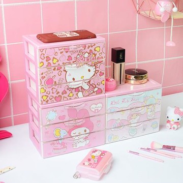 【震撼精品百貨】Little Twin Stars KiKi&LaLa_雙子星小天使~雙子星桌上型鐳射三抽收納盒(粉彩紅款)*85039
