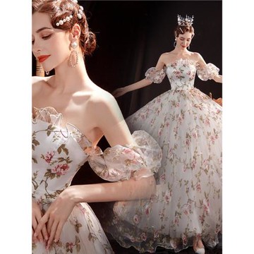 夢幻花朵甜美新娘結婚敬酒服晚宴年會藝考演出訂婚婚紗禮服16010