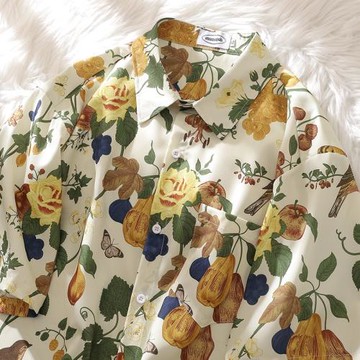 復古chic港風碎花滿印短袖襯衫女夏季潮牌寬松情侶百搭半袖花襯衣