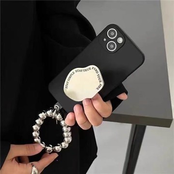 高級感冷淡風珠鏈條適用三星S22手機殼note10新女款S20小眾S21+創意S10e/S22ULTRA鏡子支架S21FE防摔全包軟殼