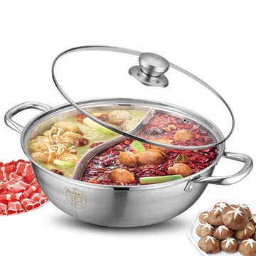 304不銹鋼鴛鴦鍋加厚二味火鍋家用涮涮鍋不銹鋼清湯鍋電磁爐通用