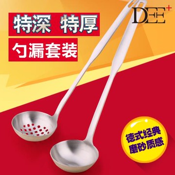 304不銹鋼火鍋勺兩件套湯勺漏勺套裝加厚長柄粥勺湯殼湯漏用品