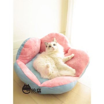 一織貓綿綿花朵毛絨貓窩 珊瑚絨保暖舒適睡眠窩加厚圓形貓床狗窩