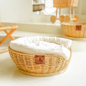 藤編日式狗窩小型犬貓咪窩手工編織冬季保暖牢固侘寂風蒲草貓窩