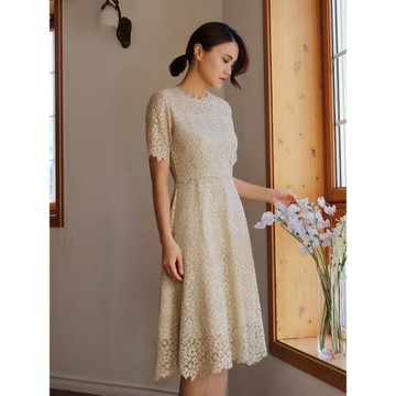SHOOYA原創《花影》韓國重工蕾絲金絲刺繡顯瘦連衣裙輕婚紗輕禮服