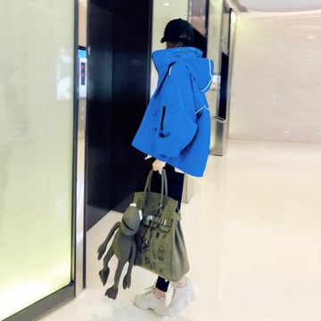2024年早秋克萊因藍外套女春秋防風連帽韓版休閑短款風衣女超好看