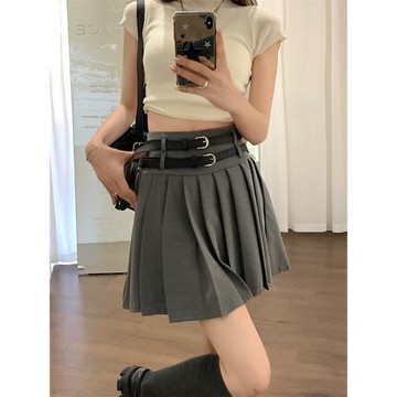 大碼甜酷風高腰顯瘦百褶裙胖m半身裙女秋季學院風短裙灰色A字裙子