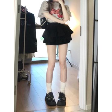 大碼法式荷葉邊A字半身裙女胖mm夏季新款高腰黑色短裙裙褲蛋糕裙