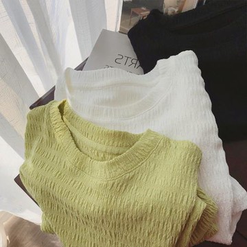 夏季2025新款獨特別致純色上衣寬松設計感小眾白色褶皺短袖t恤女