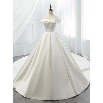 一字肩緞面輕婚紗2025新款新娘簡約法式氣質出門主紗高級質感孕婦