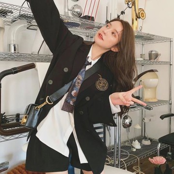 SagiDolls少女斗志 校園007!甜酷黑色百搭收腰顯瘦西裝連衣裙外套