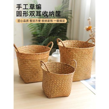 艾禮思手工編織海草收納籃 水葫蘆圓形