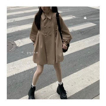自制【軟】乖巧新生!小個子秋季新款百搭甜妹氣質卡其色風衣外套