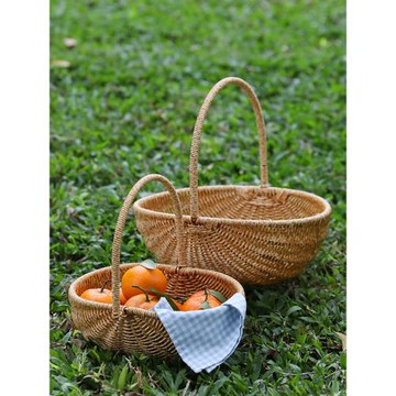 雞蛋籃子滿月禮品手提花籃插花鮮花塑料仿藤編織戶外野餐籃水果籃