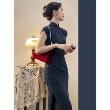左肥肥·新中式收腰顯瘦連衣裙女民國氣質優雅半開襟改良旗袍裙