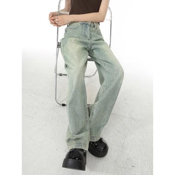 楊楊YANGRUOYU【藍城舊刊】闊腿牛仔褲女寬松直筒顯瘦復古休閑褲